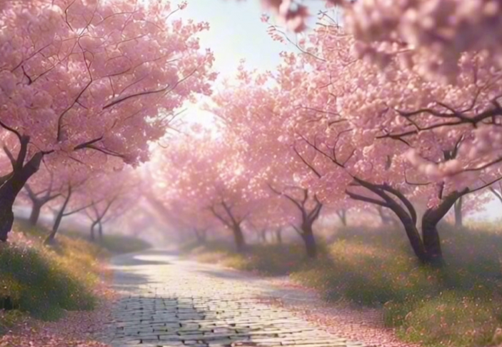 樱花开的重重叠叠,在花儿之间,露出蓝蓝的天空,像织锦一样,又好像是另一个世界的画面,樱花是这个世界的主人,而人类才是过客。偶有微风吹过,樱花悠悠的飘下来,安静的停在地上,像是告诉人类这个世界的灿烂,这...