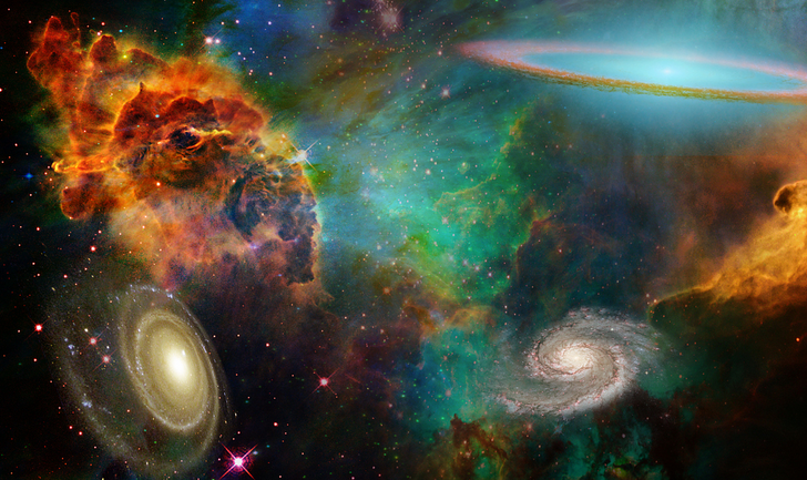 从远处观察母舰,它完全融入了其背景了,没有能量,没有辐射,外在的表现形式就是一小片星云。母舰的信息交流完全利用黑洞技术。