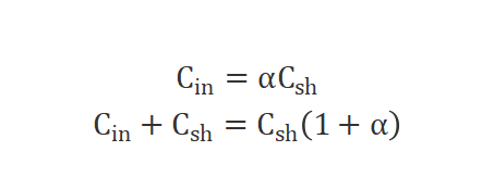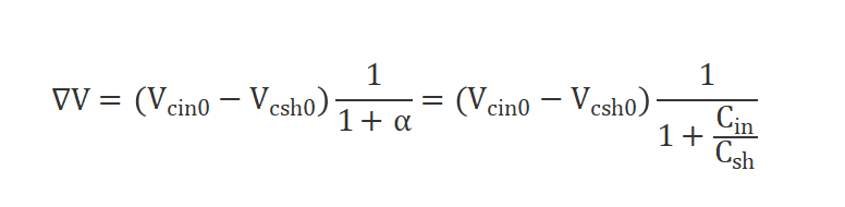 为了简化设计,我们假设输入电压近似于一个直流电源,抛开耦合因素,输入内阻远大于采样电阻,Rin>>Rsh,输入电容和采样电容之间的关系用a来表示:
