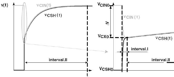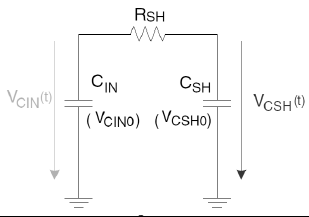 初始状态,相对来说VinCin充电相对较小,主要看CinCsh充电过程,我们构建电路模型如下图所示。